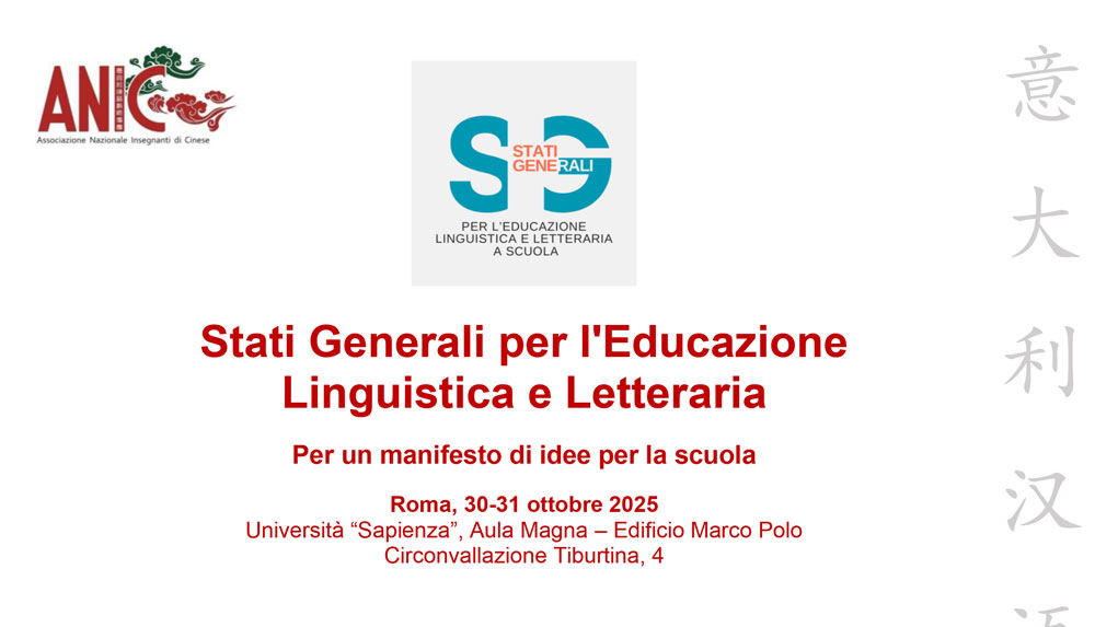 L’Associazione Nazionale Insegnanti di Cinese (ANIC) partecipa ai lavori degli Stati Generali per l’Educazione Linguistica e Letteraria a scuola (STELLE), un percorso di riflessione collettiva promosso da numerose associazioni e gruppi di docenti.